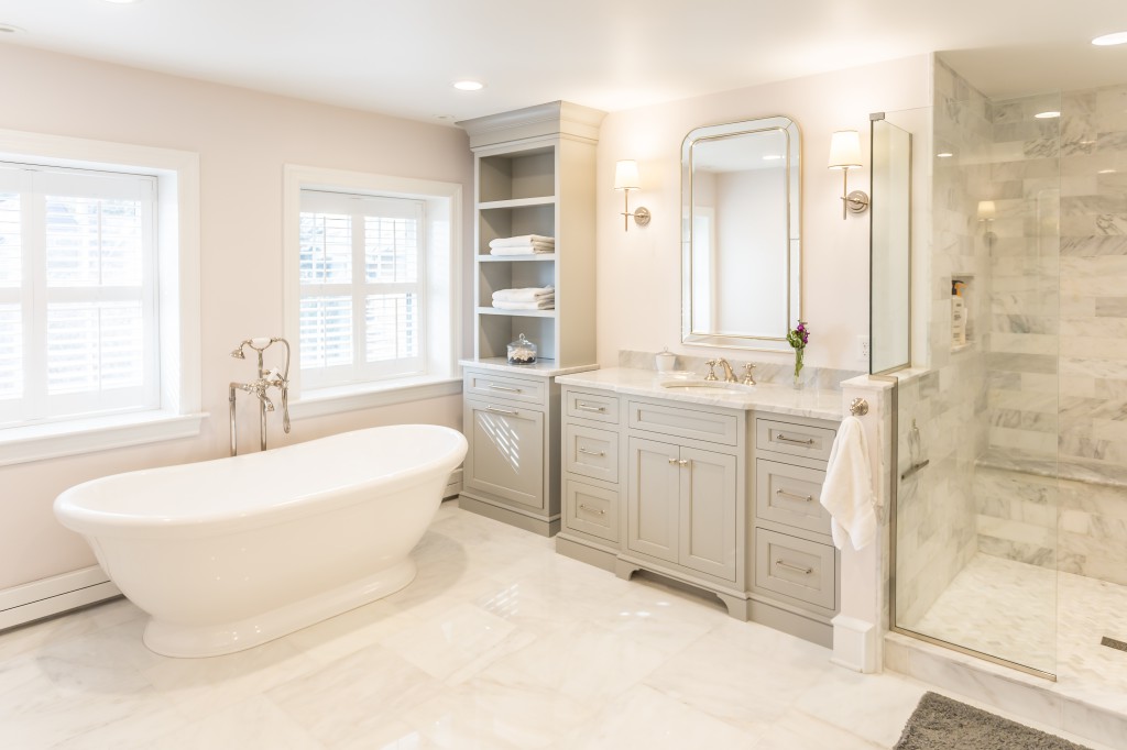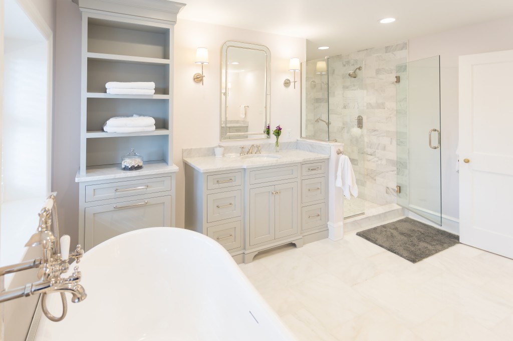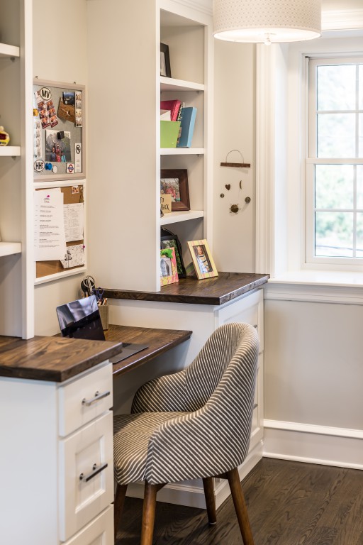 This stone colonial was built in 1930. The new homeowners wanted to make it their own and they did!! We remodeled three bathrooms, relocated the master bathroom, added a large master closet, converted a portion of the garage into a mudroom and added a powder room. The kitchen renovation is very elegant. We reused the existing wall cabinets from the butler’s pantry to recreate a new butler’s pantry!! We added a reading nook to the 2nd floor using the counter from that same butler’s pantry. A challenging project that was extremely fun to put together!!!!